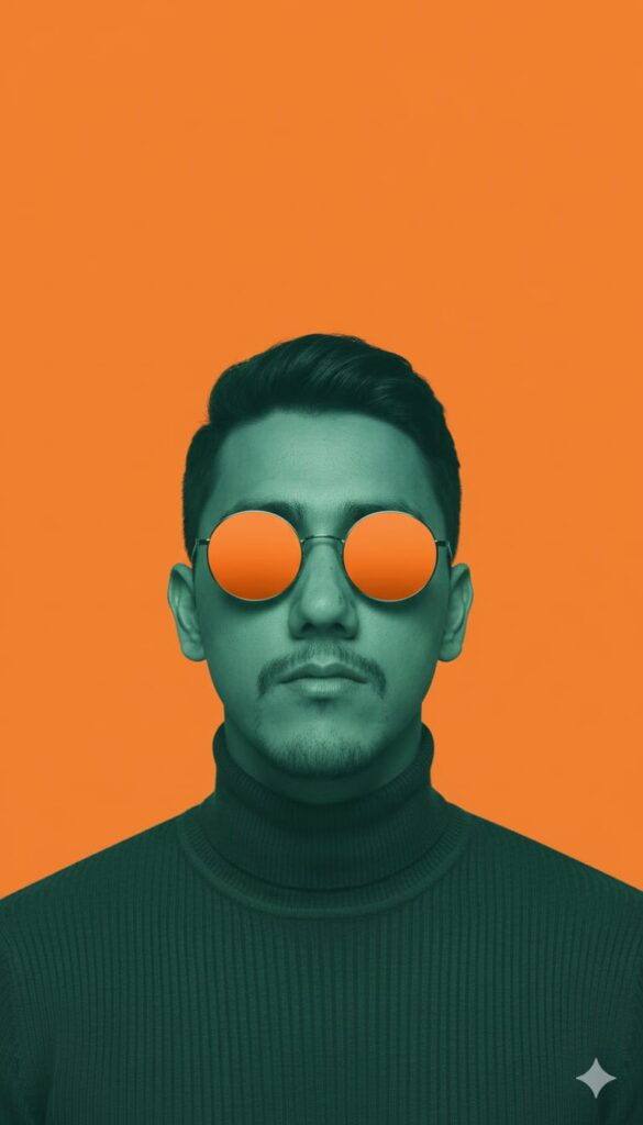 Create a cinematic, fashion-editorial portrait of the person from the input photo, processed in a monochromatic duotone treatment where the skin, clothing, and background are heavily styled using flat, opposite color tones The subject's entire form (skin, hair, and outfit) should be tinted in a deep green-teal tone (approx. #009688), while the background is rendered in a flat, vibrant orange (approx. #FF6F00), creating a bold, eye-catching color-block effect. The subject is framed in a tight head-and-shoulders crop, facing forward with a symmetrical, editorial pose and a neutral, confident facial expression. They wear a ribbed turtleneck sweater, rendered in the same color tone as the rest of the body for visual unity. Accessories include round, high-fashion sunglasses that reflect the orange background, with a perfectly smooth mirrored surface and no visible eye detail, enhancing the graphic aesthetic and mystery. Lighting is uniform, soft, and front-facing, minimizing shadows and emphasizing surface color rather than facial detail. Use a 50mm-85mm lens simulation at f/5.6 for sharp, poster-ready clarity with minimal depth blush. The overall image must feel ultra-clean, posterized, and digitally polished, resembling a luxury fashion campaign or pop art editorial cover. Textures should be simple and minimal, for example, soft fabric folds, fine hair definition while surface smoothness and a matte finish are emphasized. Avoid skin pores or natural tones. The final output evokes color theory mastery, bold graphic design, and editorial intensity, suitable for billboard fashion, record covers, or conceptual portraits. A refined 8K hyperrealistic cinematic portrait depicts a male figure, 'Upload face as reference', in a moment of quiet contemplation amidst the shelves of a modern urban bookstore. The mood is intellectual and peaceful, blending a character-focused fine art portrait with a sophisticated editorial aesthetic. The environment is a well-designed, contemporary bookstore with tall, dark wood bookshelves filled with books, illuminated by soft, warm light from stylish pendant lamps. Cinematic lighting is deliberate and soft, using diffused overhead light and subtle practical lighting from reading lamps to create a warm, inviting HDR glow with gentle highlights and shadows. The composition is a medium close-up, shot with a 85mm f/1.4 prime lens, utilizing a shallow d… A moody 8K hyperrealistic cinematic photograph features a male figure, 'exactly face uploaded image 100%', navigating a rain-slicked city street at night, capturing a blend of urban grittiness and refined style. The atmosphere is melancholic and atmospheric, merging the narrative depth of cinema with the polished aesthetic of a fashion editorial. The environment is a wet, neon-lit city street after a heavy downpour, with reflections shimmering on every surface. Dramatic cinematic lighting is created by the multi-colored neon signs and streetlights reflecting off the wet pavement, creating deep shadows and brilliant highlights, resulting in a stunning HDR effect. The composition is a low-angle medium shot, captured with a 50mm f/1.2 prime lens, creating cream… A raw and powerful, hyper-realistic 8K photography prompt features a male figure, "exactly face uploaded image 100%", standing with quiet confidence in a derelict industrial urban zone, against a backdrop of corrugated metal and faded brick under a harsh midday sun. The mood is gritty and resilient, ideal for a strong narrative Social Media Poster. The environment is characterized by strong, unfiltered sunlight creating stark contrasts between deep shadows and brightly lit surfaces, with dust motes visibly suspended in the air, adding to the atmosphere. Captured with a 50mm f/1.8 lens, the composition is a medium shot portrait, focusing on the subject's resolute expression and the texture of his attire, with the industrial elements forming a graphic, almost