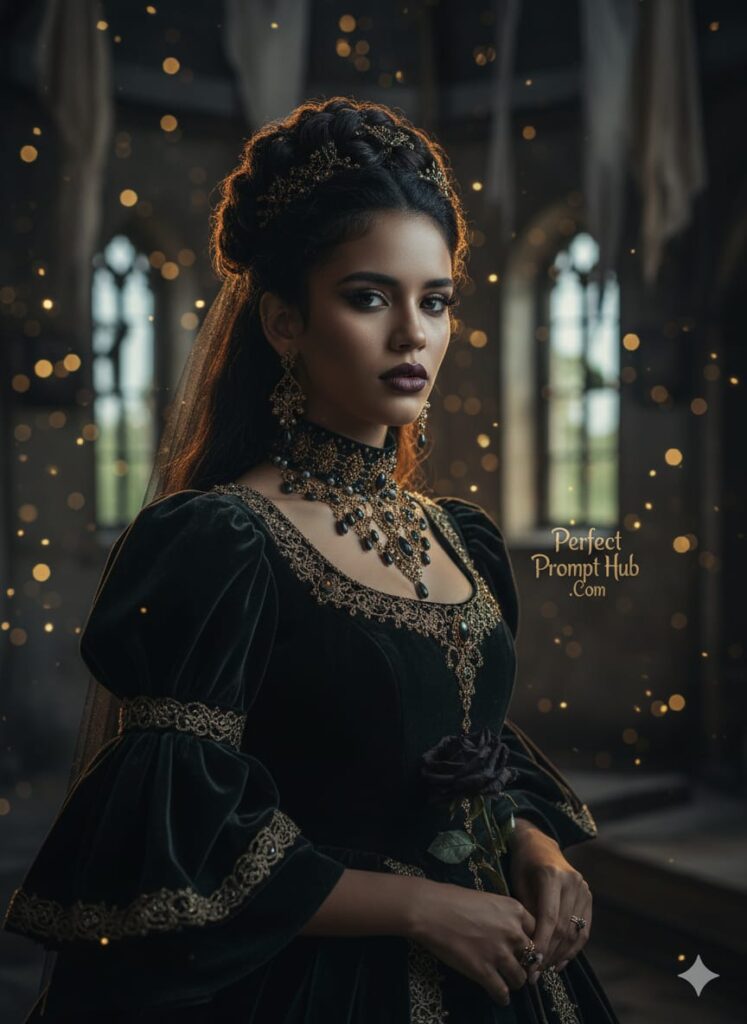 Eyes of the Silent Queen Step into the world of shadow, gold, and silent elegance — where every detail tells a story and every gaze holds a mystery. This portrait is a blend of cinematic mood, gothic allure, and hyper-realistic artistry. If you enjoy artworks like this, share it with as many people as you can — let the beauty travel far beyond this page. And don’t forget to follow my account for more exclusive prompts, updates, and new creations. 📌 The prompt for this artwork is placed in the comment section of each image. To get it, feel free to visit my account. Don't change her face.